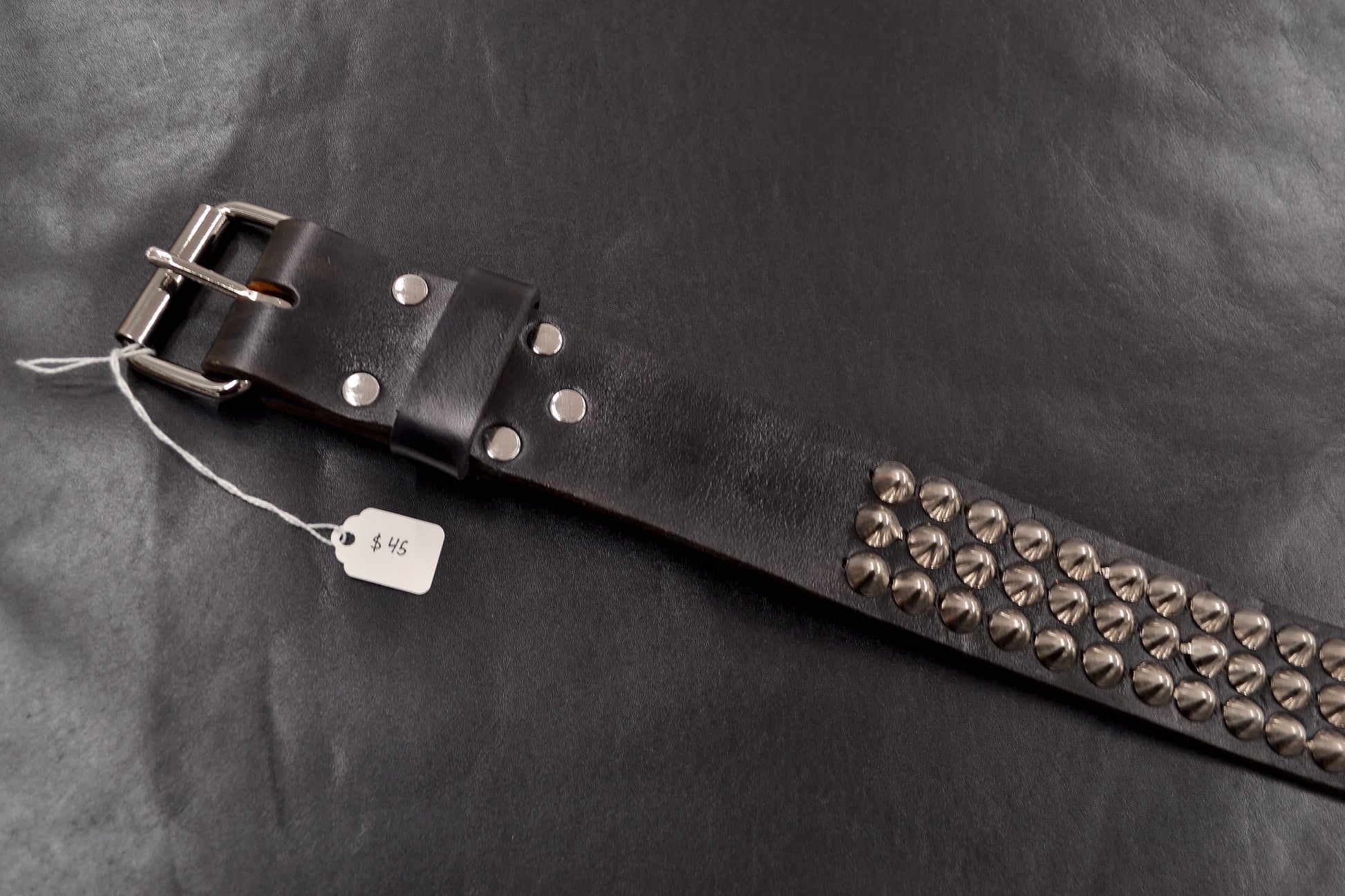 This series of rough years heavy weight belts is some of the most durable work made so far. This type of belt should be worn in and stand over ten years of regular mistreatment. Made from super heavy 12 oz skirting side which is a fine and hand chosen selection. The weight of this side is greater than any other available in retail. You can really feel the diference. The standard stud and stud pattern is a great classic for every day wear. Unfinished edges and resolene sheen are a rustic look for the style and modernism of bdsm belts. It will attract people of the night who will help break it in.