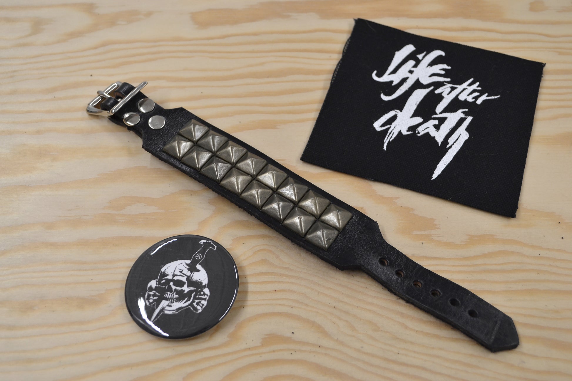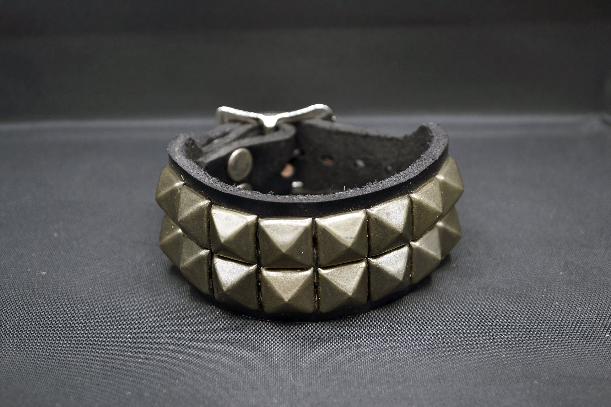 This bracelet is made from 7 to 8 oz black harness leather with decent flexibility. Always made from salvaged parts, and excellent shoulders. Many years of leatherwork have refined the bracelet and remain the challenging detail work of the trade. This can be considered the shops second version of the bracelet, with a lighter leather weight and different shape. It is meant to fit the wrist more comfortably that before. Edges are often beveled and finished so that the edge never effects the wrist. It can be worn with many outfits or used for anything. For custom orders use the order form.